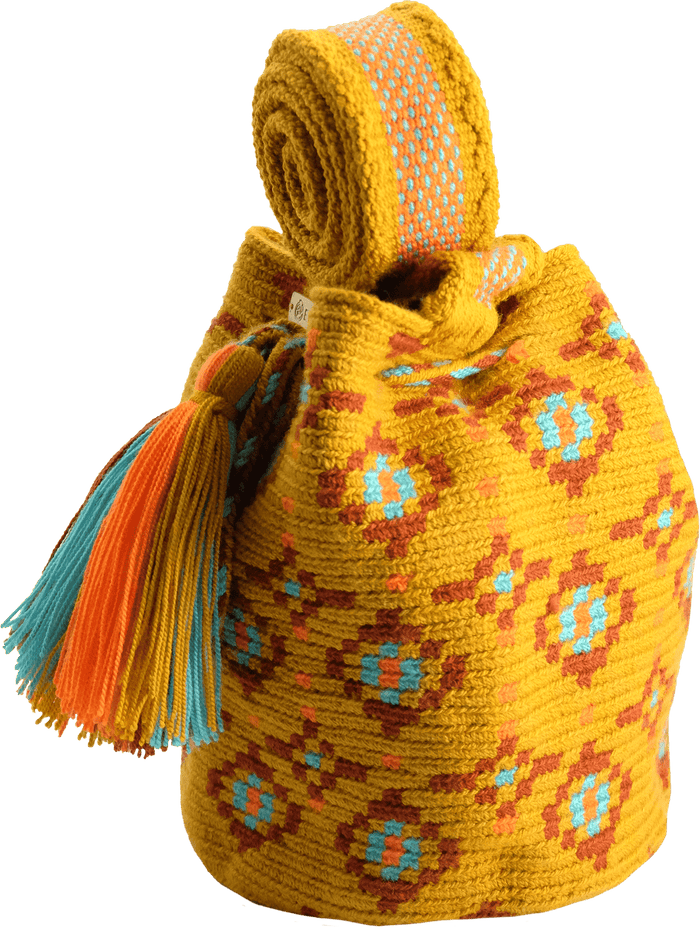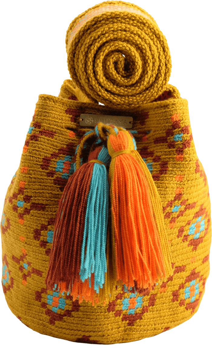 The inspiration on this mochila is mother earth, and the actual characteristic elements from La Guajira, in northern Colombia. -