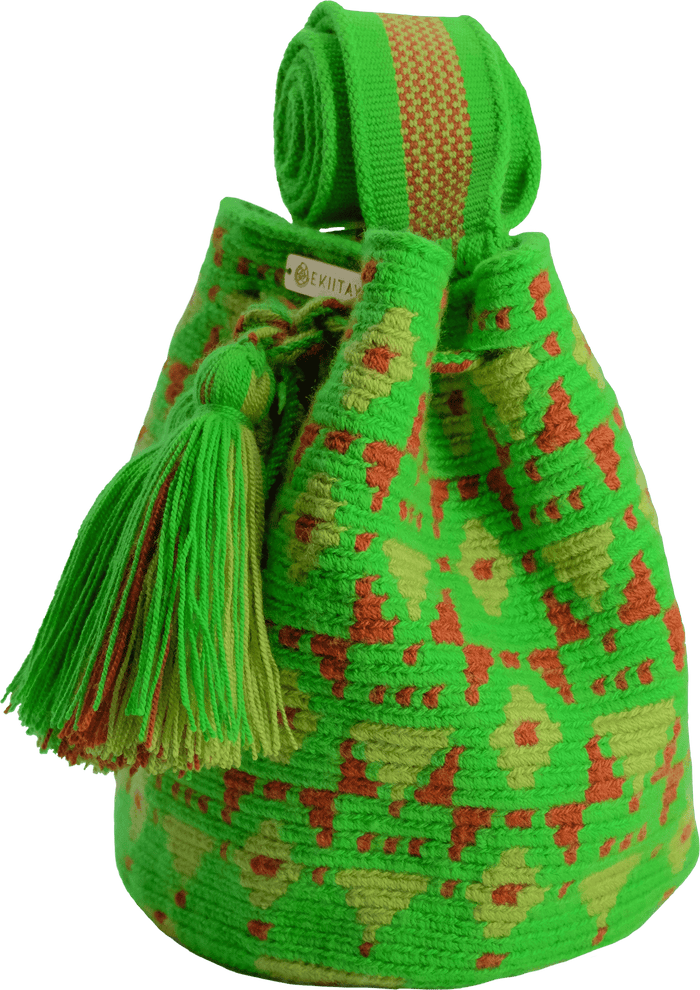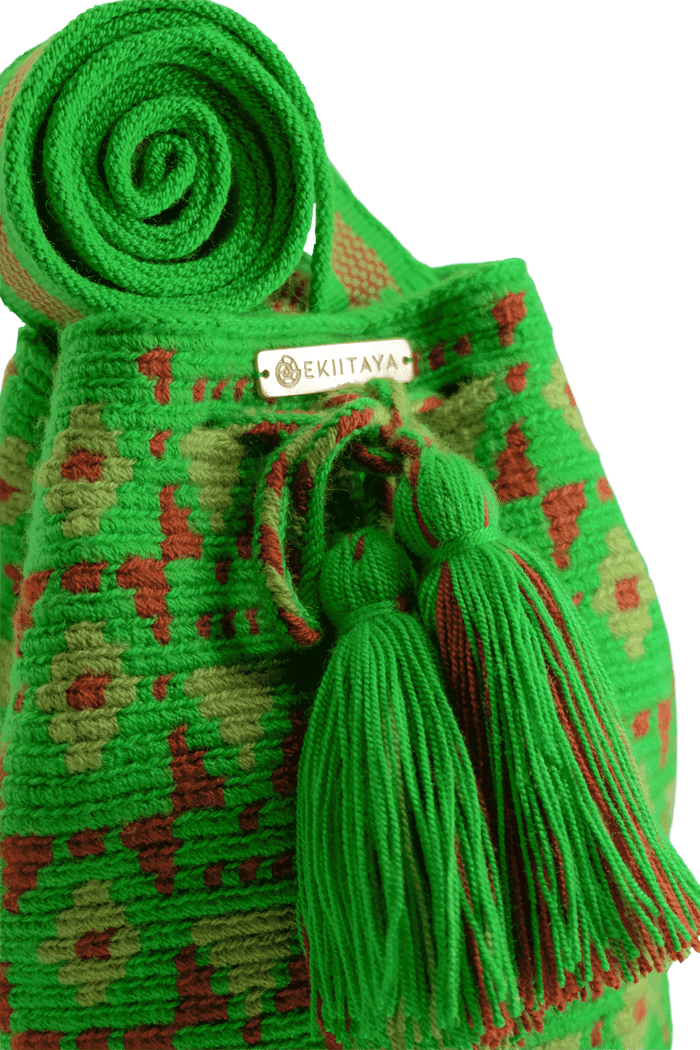 The inspiration on this mochila is mother earth, and the actual characteristic elements from La Guajira, in northern Colombia. -