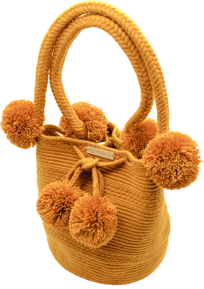 La inspiración detrás de esta mochila tipo cóctel es la simplicidad y elegancia, con un toque de etnia. La técnica aplicada se basa en el arte heredado de los Wayuú. -